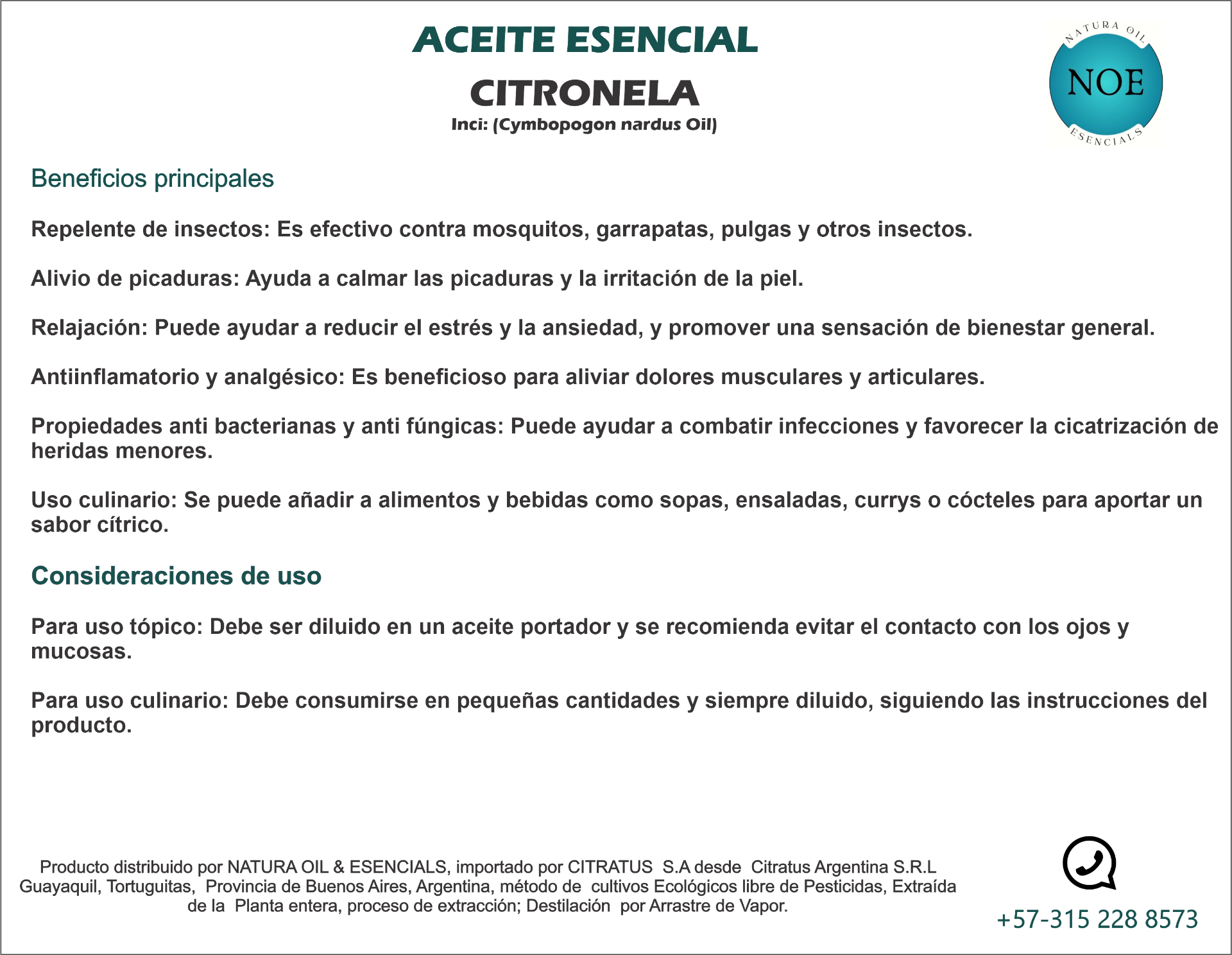 ACEITE ESENCIAL DE CITRONELA (Cymbopogon nardus Oil)