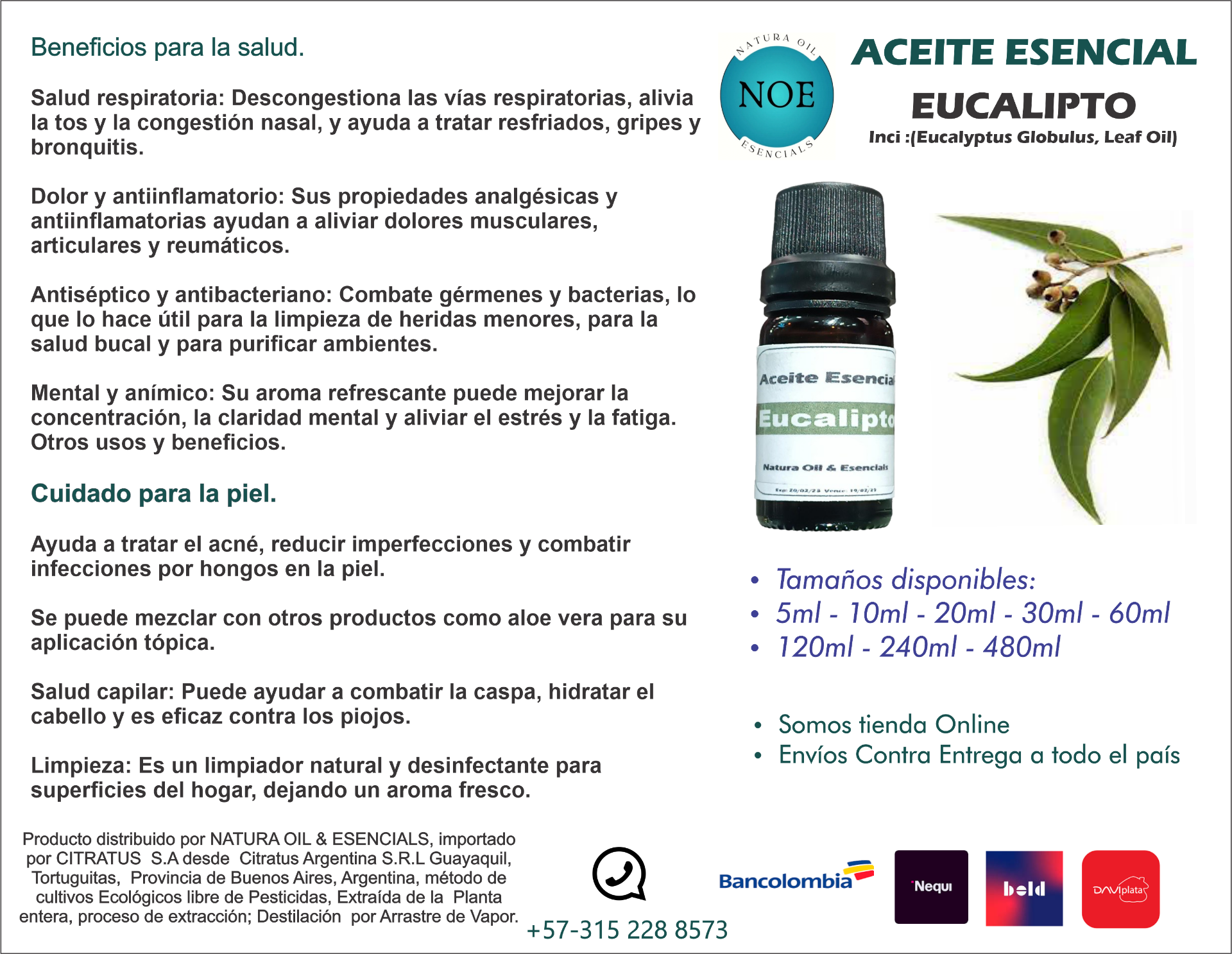 Salud respiratoria: Descongestiona las vías respiratorias, alivia la tos y la congestión nasal, y ayuda a tratar resfriados, gripes y bronquitis.